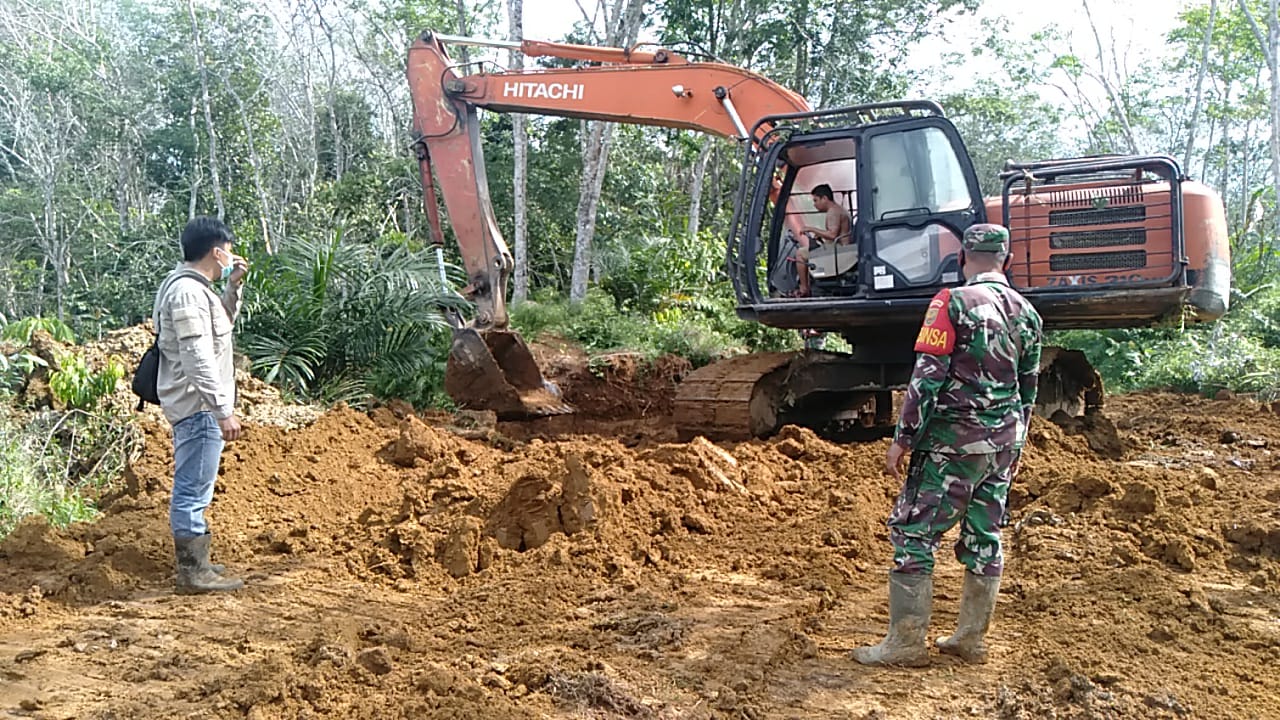 Merangin – Anggota Kodim 0420/ Sarko Serda Edi Susanto dampingi perwakilan dari Dinas Pekerjaan Umum (PU) Kabupaten Merangin Saudara Reza untuk melaksanakan pengecekan di lokasi TMMD ke-111 Kodim 0420/Sarko di Bukit Beringin Kecamatan Bangko Barat Kabupaten Merangin yang sedang dalam pengkerjaan. Selasa (02/06/2021).