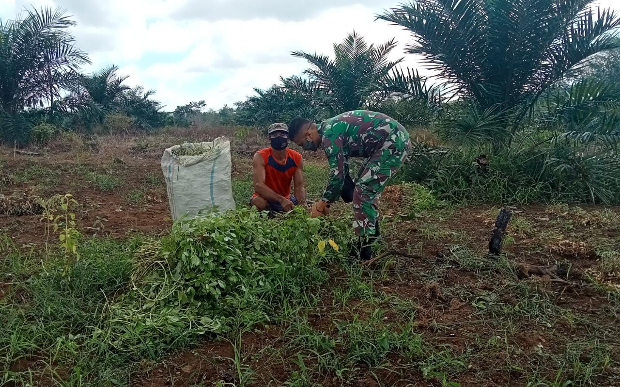 Wujud dukungan TNI yang tergabung dalam Pra TMMD Reguler Ke 111 yaitu Serda Denny Rizaldo mendukung ketahanan pangan (Hanpangan) di samping melaksanakan tugas TMMD dengan semangat ikut serta terjun langsung ke kebun membantu para petani memanen sayuran.