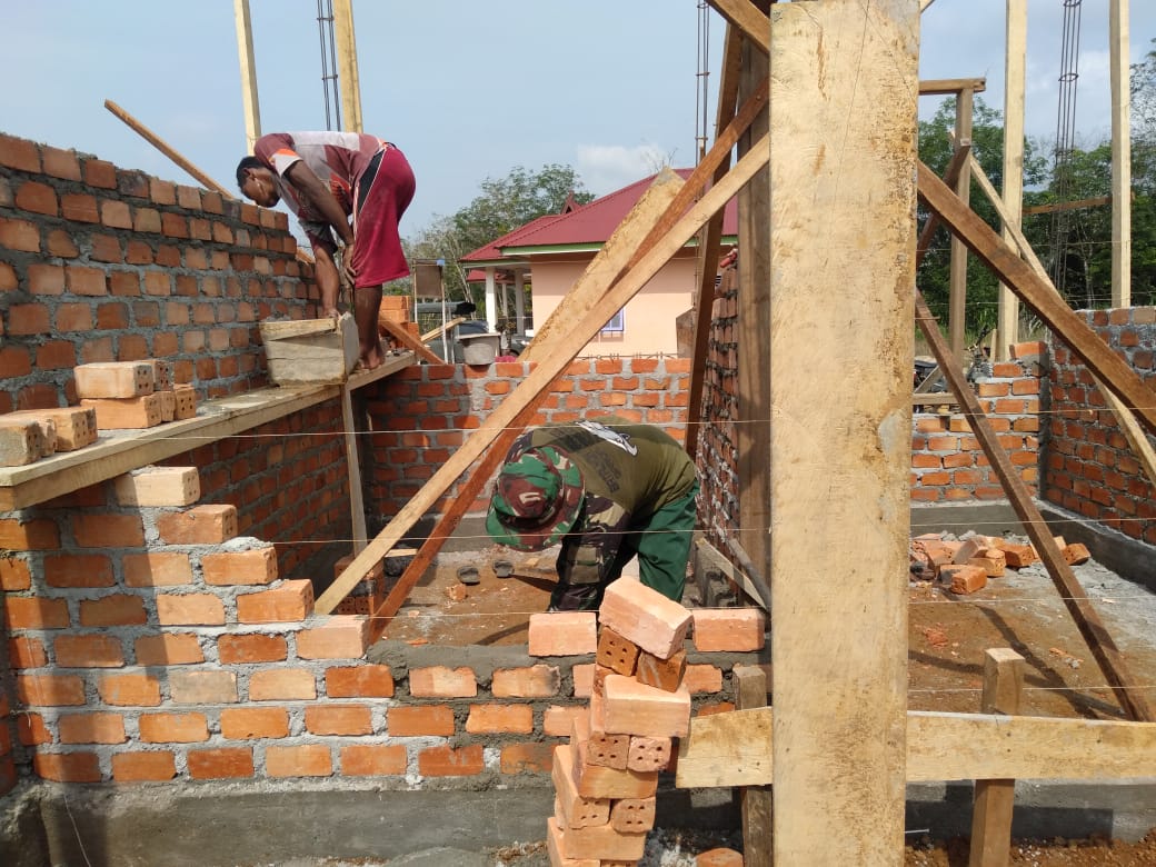 Pemasangan batu bata dilakukan Serda Andi Kurniawan bersama Heri (42) Warga Dusun 1 Desa Bukit Beringin.