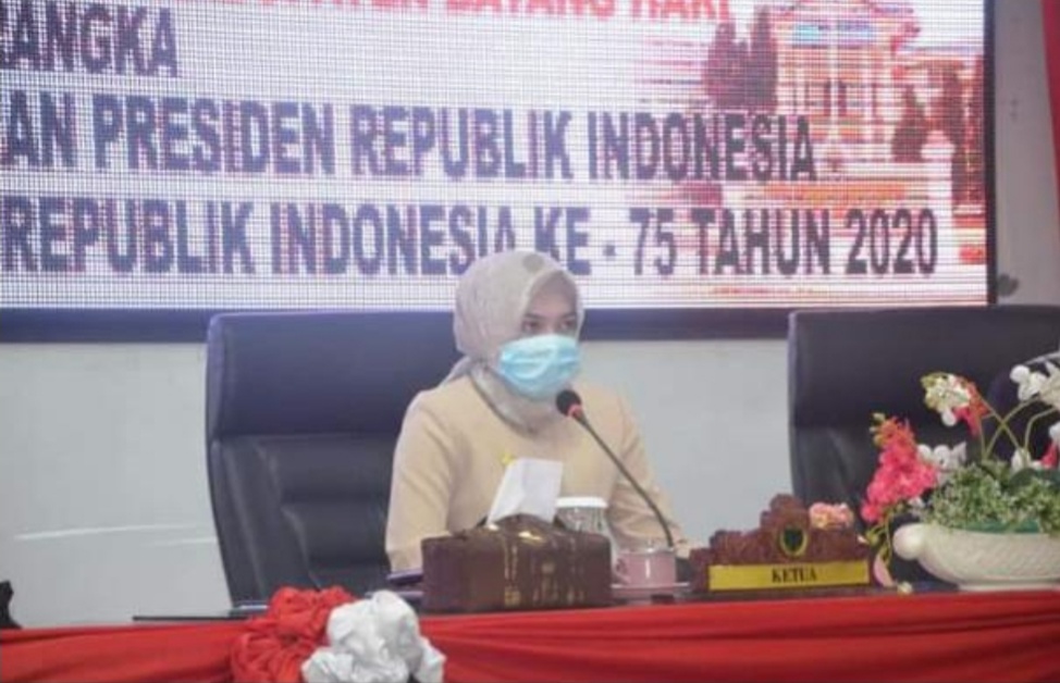 Batanghari – Ketua Dewan Perwakilan Rakyat (DPRD) Kabupaten Batang Hari, Anita Yasmin SE memimpin Paripurna mendengarkan pidato kenegaraan Presiden untuk Kemerdekaan Republik Indonesia ke 75 tahun 2020, Jumat (14/8) pagi.