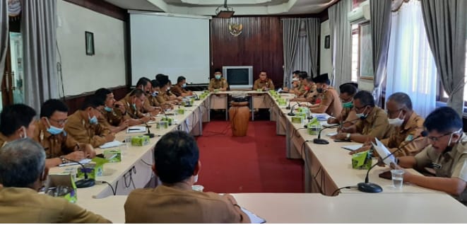 Kerinci – Senin (22/2), di ruang utama kantor Bupati Kerinci, Pemerintah Kabupaten (Pemkab) Kerinci mengelar rapat evaluasi Pemilihan Kepala Desa (Pilkades) serentak 2021.