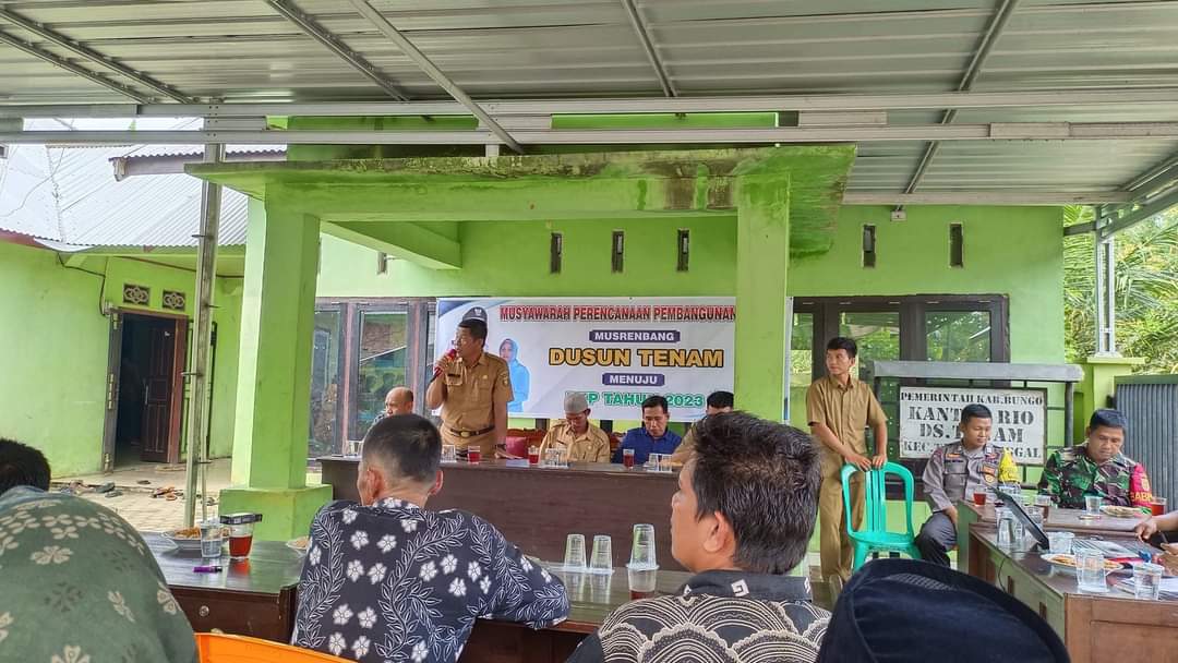 Muara Bungo – Musyawarah Perencanaan Pembangunan Dusun (Musrenbangdus) Tenam Kecamatan Tanah Sepenggal, Kabupaten Bungo dengan agenda pembahasan rancangan rencana kerja pemerintah dusun (RKPDus) untuk pengajuan tahun 2023, Selasa (27/09/2022).