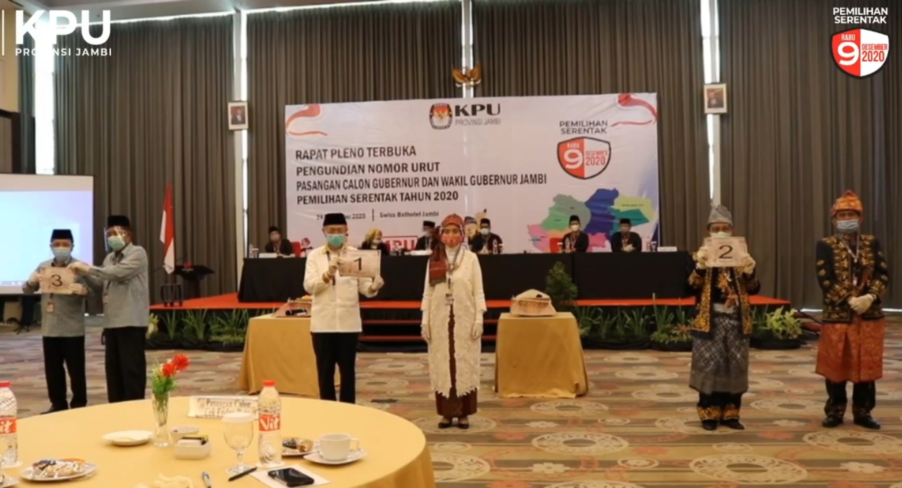 Jambi – Rapat pleno pengundian nomor urut pasangan calon (Paslon) Gubernur dan Wakil Gubernur Jambi di Pemilihan Kepala Daerah (Pilkada) Provinsi Jambi, dilaksanakan, Kamis (24/9/2020).