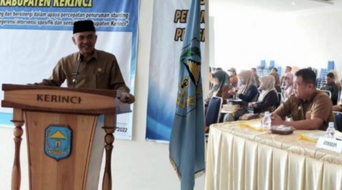 “Tingginya prevelensi Stunting jika kita abaikan dapat mengancam sumber daya manusia, Stunting di awal kehidupan menyebabkan kerusakan permanen pada perkembangan Kognitif diikuti gangguan perkembangan motorik dan intelektual sehingga menimbulkan konsekuensi terhadap pendidikan dan produktivitasnya pada saat dewasa yang pada akhirnya berpotensi menurunkan pertumbuhan ekonomi.”ungkap Bupati Kerinci