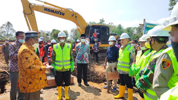 KERINCI – Bupati Kerinci Adirozal lakukan peletakan batu pertama pertanda dimulainya pembangunan Gedung Pusat Layanan Haji dan Umrah Terpadu Kantor Kementerian Agama (Kemenag) Kabupaten Kerinci di desa Sebukar, Kecamatan Tanah Cogok, Kamis (08/07/2021).