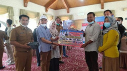 Bantuan tersebut diserahkan langsung oleh Bupati Adirozal secara simbolis kepada Bupati Tanjung Jabung Timur Romi Hariyanto.