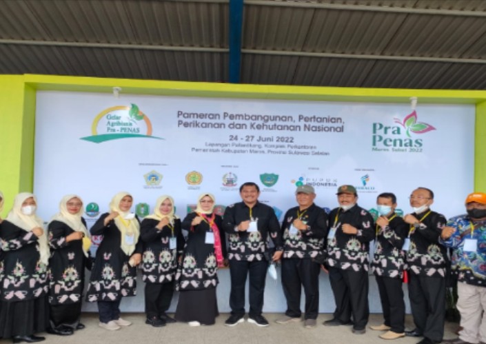 Sulawesi Selatan – Bupati Bungo Ditemani Ketua TP PKK Kabupaten Bungo beserta kepala dinas terkait dan istri menghadiri Pembukaan Pra-Penas (Pekan Nasional) Petani dan Nelayan di Lapangan Pallantikang, Kompleks Perkantoran Bupati Maros, Sulawesi Selatan yang akan berlangsung 25-27 Juni 2022.
