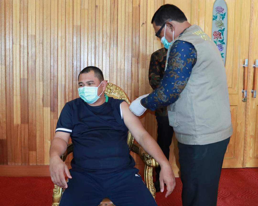 Muara Bungo – Dalam rangka meminimalisir penyebaran covid-19, Bupati Bungo H. Mashuri, kembali di suntik vaksin. Penyuntikan ini dilakukan di Rumah Dinas (Rumdis) Bupati Bungo, Sabtu pagi (20/02/2021).