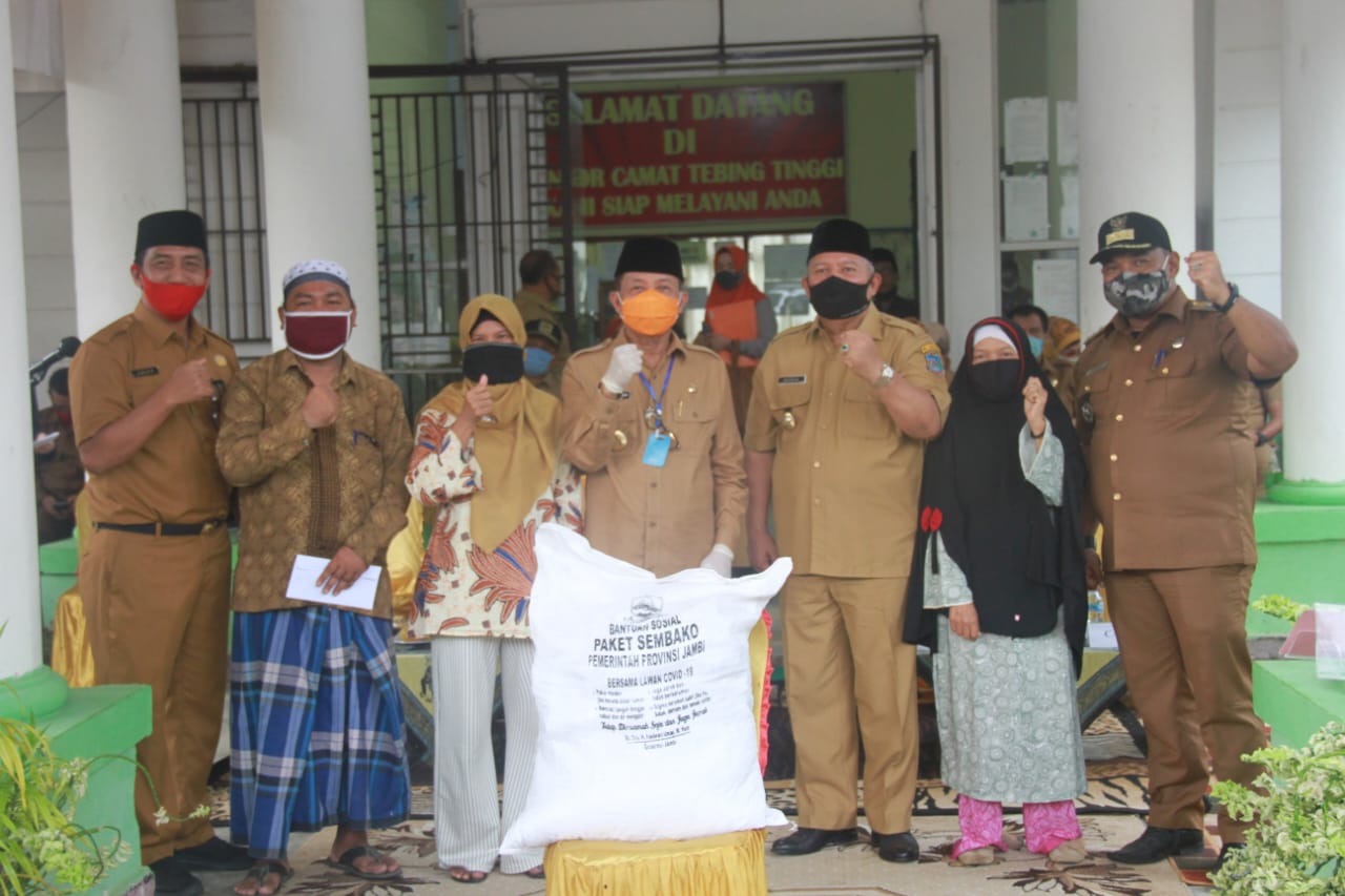 Tanjab Barat-, Bupati Tanjung Jabung Barat Drs. Ir. H Safrial MS, dampingi Gubernur Jambi Fachrori Umar salurkan bantuan Jaring Pengaman Sosial (JPS) tahap kedua untuk warga terdampak Covid-19 di Kecamatan Tebing Tinggi, Senin (12/07/2020).