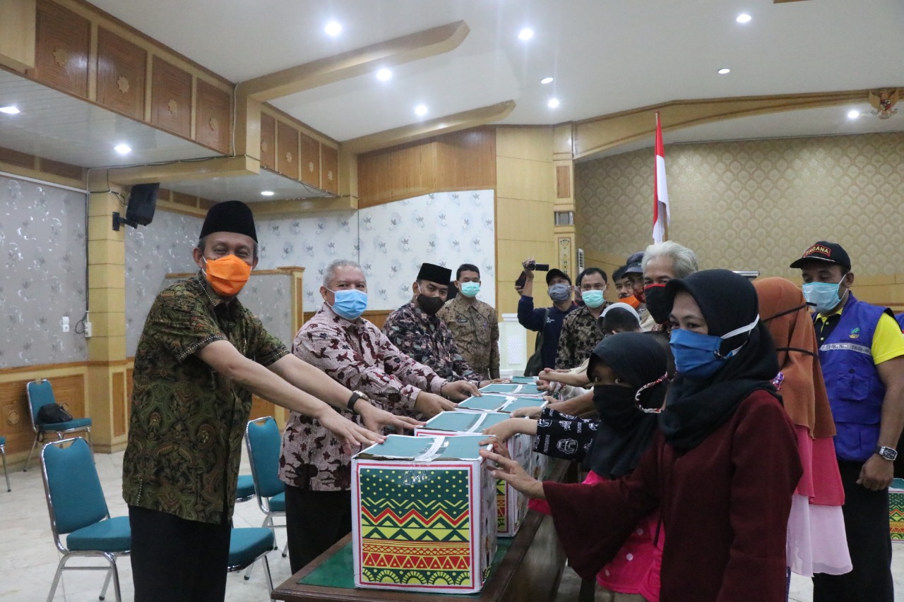 Tanjab Barat- Bupati Kabupaten Tanjung Jabung Barat Dr. Ir. H. Safrial MS serahkan secara simbolis bantuan sembako dari Perusahaan SKK Migas-PetroChina bagi masyarakat Kabupaten Tanjung Jabung Barat. Kamis (14/05).