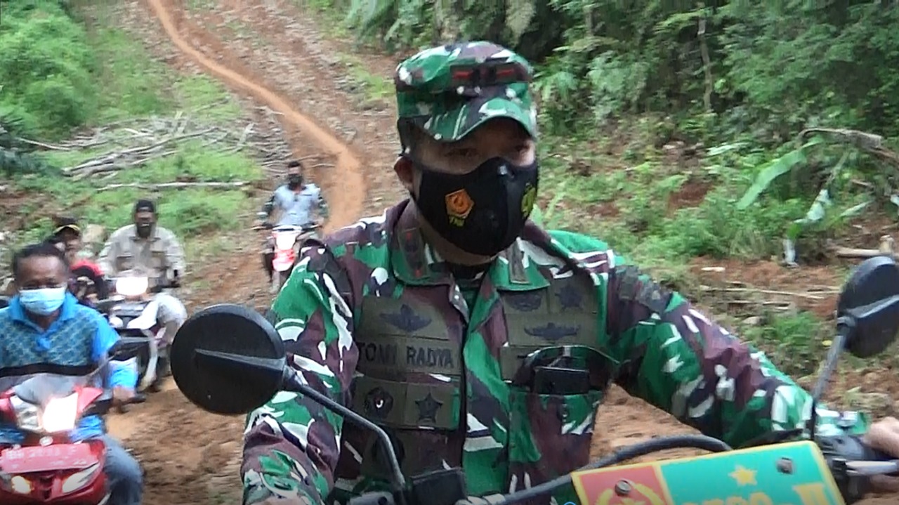 Bahkan seorang Dandim harus ‘jungkir balik’ saat mengecek lokasi peningkatan jalan tersebut. Untuk menuju lokasi peningkatan jalan yang hanya bisa dilalui roda dua yang medannya cukup sulit dilalui, bahkan saat Dandim 0420 Sarko melakukan pengecekan cuaca tidak mendukung hingga alumni Akmil 2001 ini terpaksa harus terpeleset dijalan buruk, namun hal ini tak mengurangi rasa surut untuk melihat titik jalan yang harus dikerjakan.
