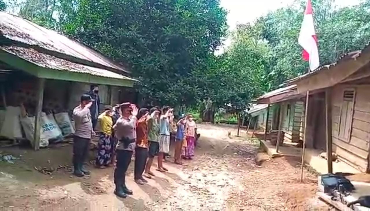 Selama tiga menit, yakni pukul 10.17 WIB hingga 10.20 WIB warga SAD dipandu Kapolsek setempat dan Bhabinkamtibmas mengikuti upacara dan hormat bendera merah putih sebagai wujud rasa cinta tanah air dan menumbuhkan rasa nasionalisme.
