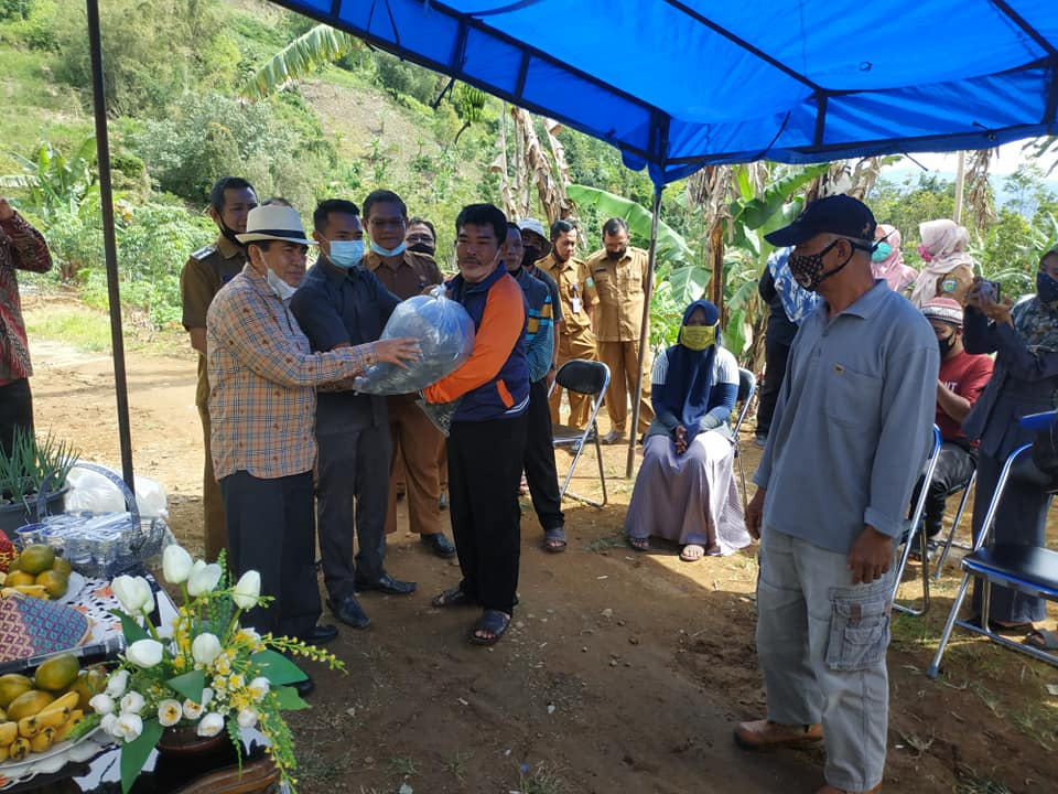 SUNGAIPENUH – Walikota H.Asafri Jaya Bakri (AJB) menyerahkan bantuan bibit ikan bagi kelompok tani pembudidaya, Selasa (27/10).