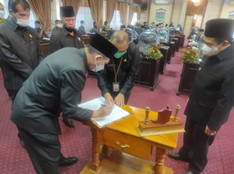 Selanjutnya diakhir rapat Paripurna juga dilaksanakan Penandatangan Nota Kesepakatan Pengesahan 2 Ranperda tersebut menjadi Perda. (Adv/Sep)