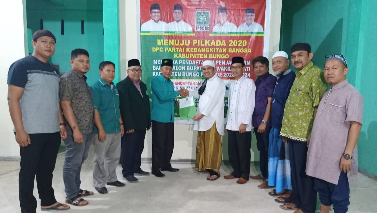 Muara Bungo – Bertempat di Kantor Partai Kebangkitan Bangsa (PKB) di Kelurahan Sungai Binjai, Kecamatan Bathin III, Kabupaten Bungo. H.Mashuri kembalikan berkas pendaftaran sebagai calon Bupati Bungo di Pilkada Tahun 2020 mendatang.