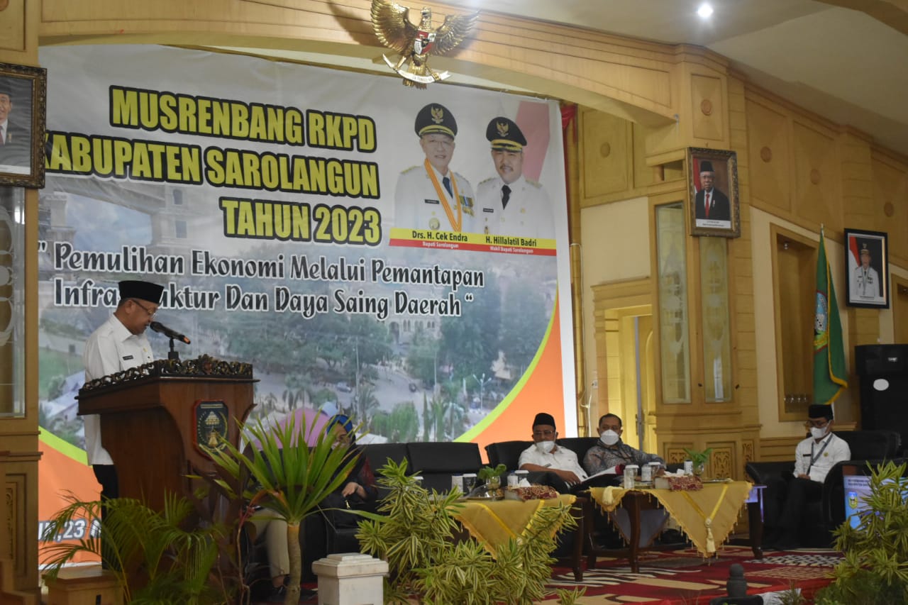 Sarolangun – Bupati Sarolangun Drs H Cek Endra menghadiri sekaligus membuka Musyawarah Perencanaan Pembangunan (Musrenbang) Rencana Kerja Pemerintah Daerah (RKPD) Kabupaten Sarolangun tahun 2023, Rabu (23/03/2022) di ruang pola Kantor Bupati Sarolangun.