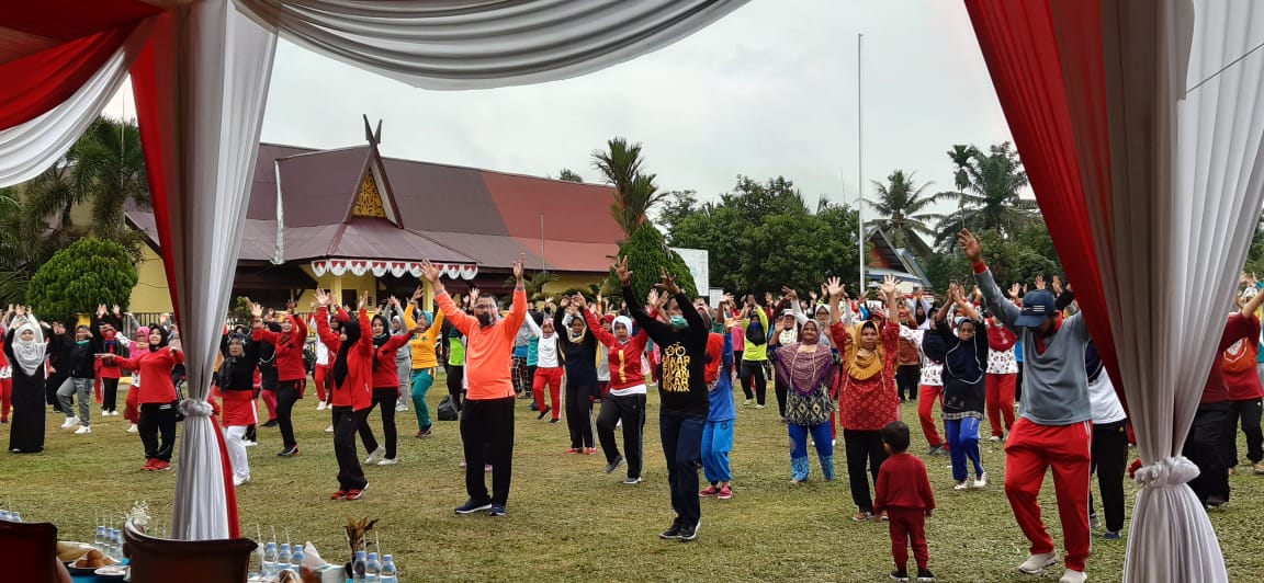 Muara Bungo – Pasangan calon bupati dan calon wakil bupati Bungo nomor urut 2, Hamas-Apri menghadiri undangan Senam Srikandi dalam rangka menyambut Hari Lansia Nasional Tahun 2020 yang digelar di lapangan Kuamang Jaya, Minggu (27/9/2020).