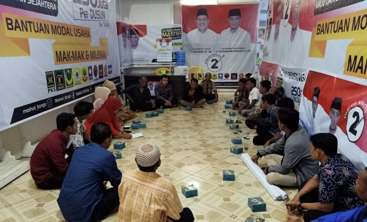 MUARABUNGO – Tokoh masyarakat, Pemuda dan pemudi Tanah Sepenggal menyatakan sikap mendukung pasangan calon Bupati nomor urut 2, H Mashuri dan H Safrudin Dwi Apriyanto (HAMAS-APRI). Bahkan, sejumlah tokoh masyarakat, pemuda dan pemudi setempat menyatakan akan kompak berjuang untuk memenangkan pasangan incumbent itu. “HAMAS-APRI harga mati,” kata mereka kompak.