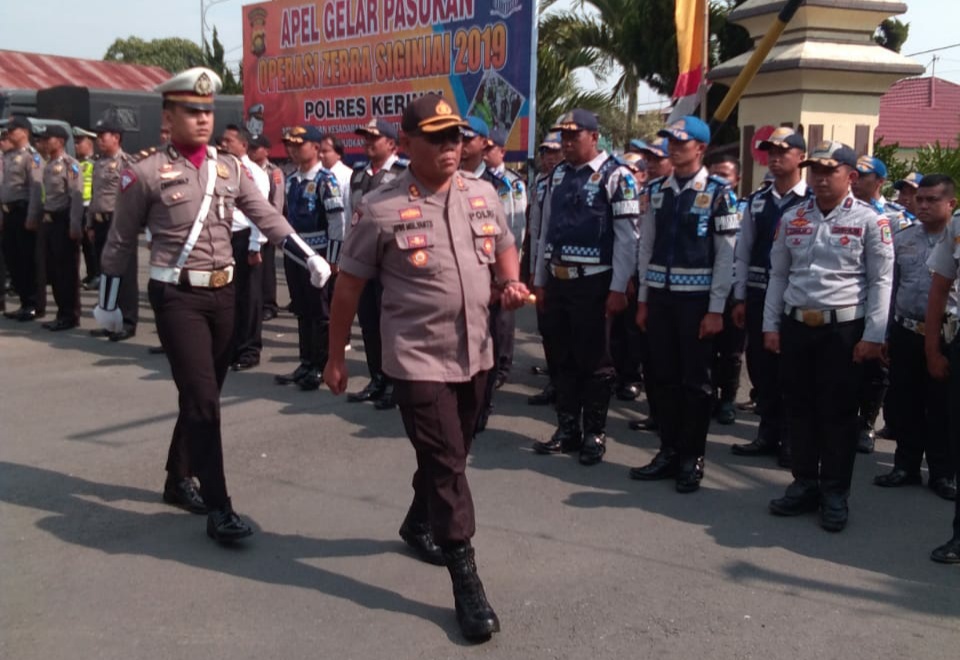Kapolres Kerinci AKBP Dwi Mulyanto bertindak selaku pimpinan apel gelar pasukan Ops Zebra Siginjai tahun 2019, dan diikuti oleh ratusan personel jajaran Polres, anggota TNI Kodim 0417/Kerinci, Dinas Perhubungan (Dishub) Kabupaten Kerinci dan Kota Sungaipenuh, serta dihadiri segenap unsur Forkopimda.