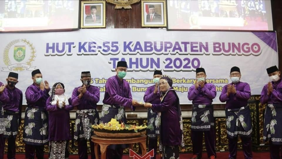 ”Acara syukuran ini kita laksanakan secara sederhana, mengingat pandemi Covid-19 yang masih mewabah, Namun demikian kesederhanaan tidak mengurangi arti penting dari HUT ke-55 Kabupaten Bungo, Semoga wabah ini cepat berlalu,” Ungkap Akhmad Bestari.