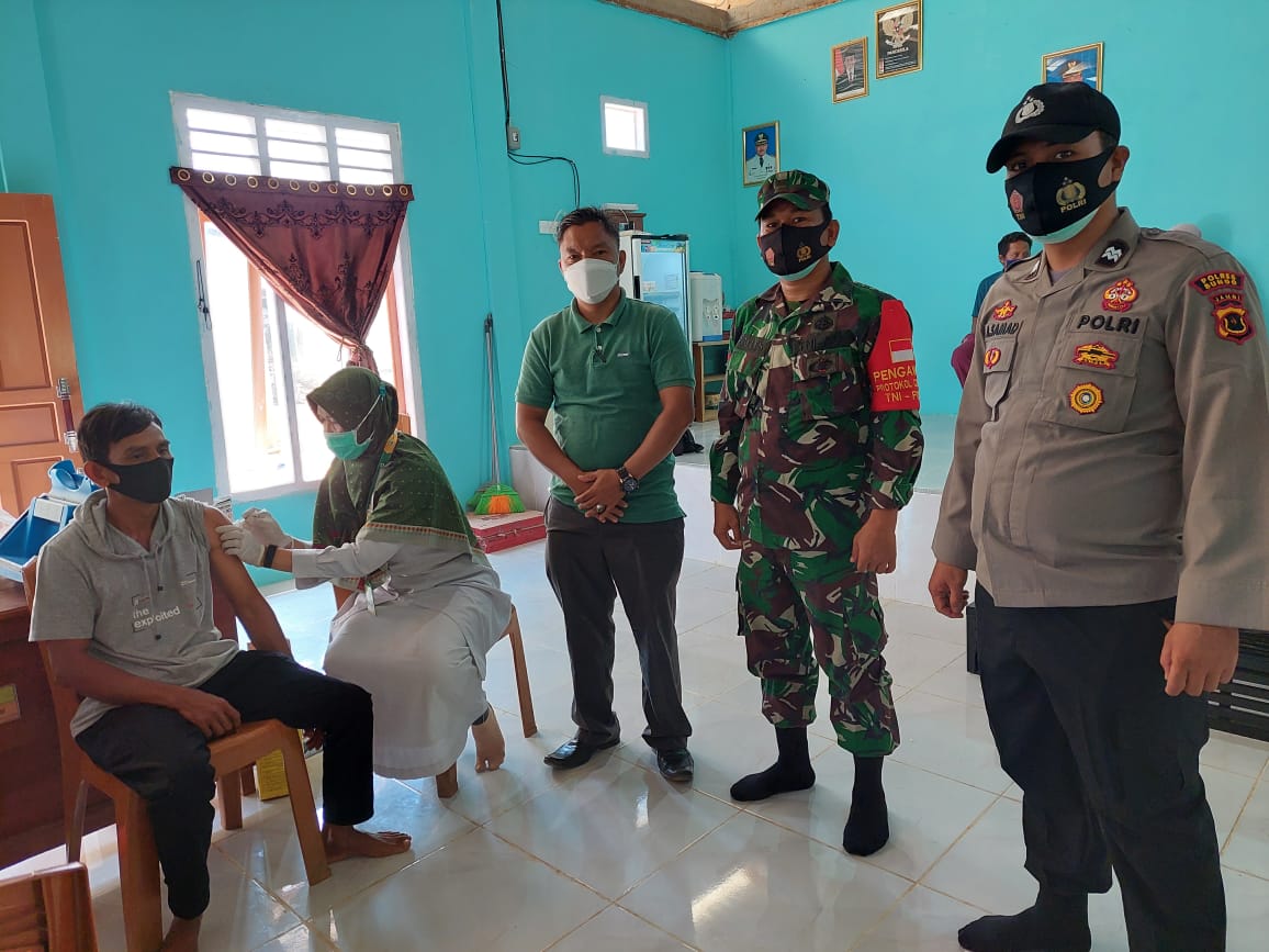 Muara Bungo – Dihadiri Kasi Pemerintahan, Babinsa, Babinkamtibmas dan Datuk Rio, Pemerintah Dusun Tebo Jaya Kecamatan Limbur lubuk Mengkuang melakukan Vaksinasi Massal di Balai Dusun Tebo Jaya, Selasa (27/7)