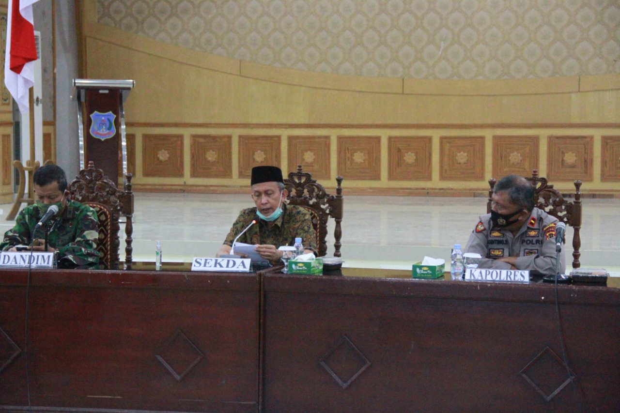 Tanjab Barat-, Pilkada serentak 2020 yang berlangsung di masa pandemi covid-19 harus dilaksanakan dengan penerapan protokol kesehatan. Untuk itu Pemkab Tanjab Barat mengadakan Rapat Koordinasi (Rakor) Penegakan Hukum Protokol Kesehatan pada Tahapan Pilkada Serentak 2020 di Balai Pertemuan Kantor Bupati yang dibuka oleh Sekretaris Daerah, Ir. H. Agus Sanusi M,Si, kamis(17/09/2020).