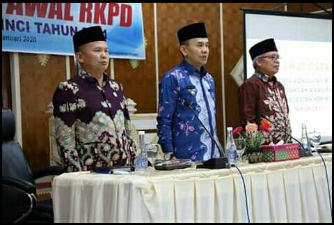 Kerinci – Pemerintah Kabupaten Kerinci melaksanakan Konsultasi Publik Rancangan Awal Rencana Kerja Pemerintah Daerah (RKPD) Kabupaten Kerinci tahun 2021 di ruang Pola Kantor Bupati Kerinci, Kamis (30/01/2020).