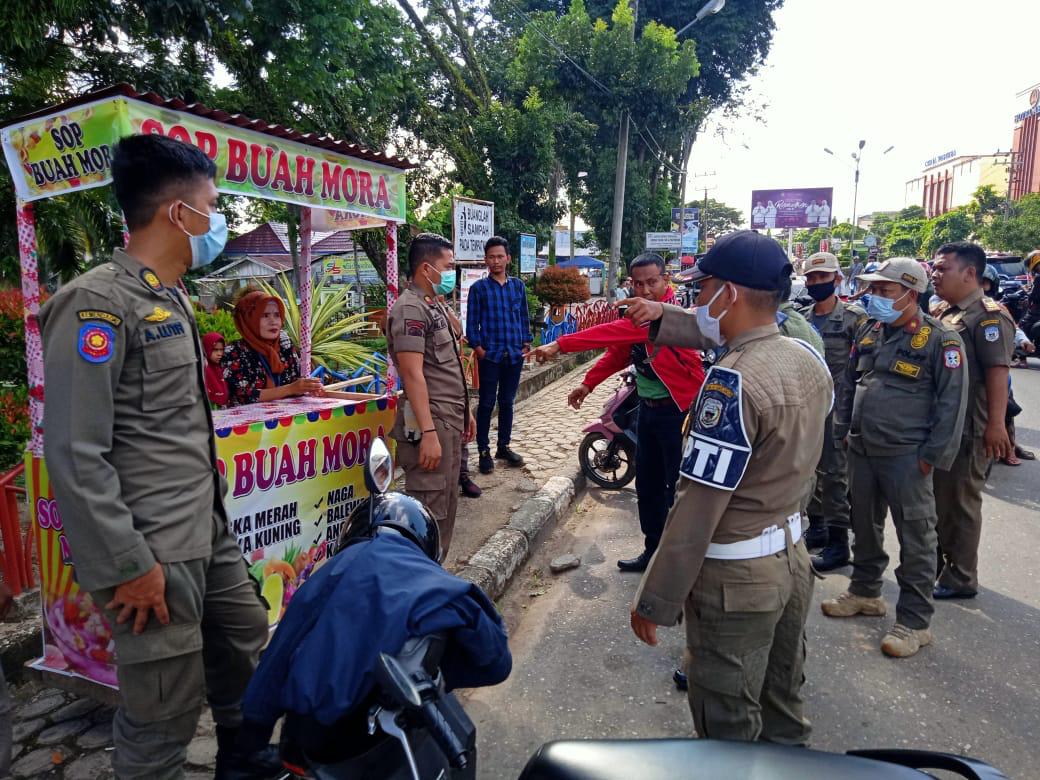 Sarolangun – Satuan Polisi Pamong Praja (Satpol PP) Kabupaten Sarolangun melakukan penertiban terhadap puluhan Pedagang Kaki Lima (PKL) yang nekat berjualan di badan jalan, Rabu (21/4/2021) siang.