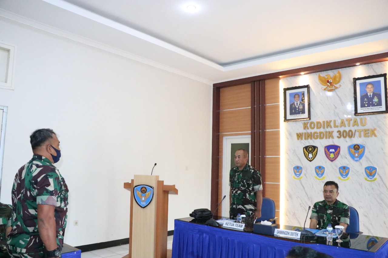 TNI AU Kalijati – Komandan Wing Pendidikan 300/Teknik (Danwingdik 300/Teknik) Kolonel Tek Videon Nugroho S., S.T.,M.Han, yang didampingi Para Kepala Dinas, Komandan Skadik dan Perwira Staf Jajaran Wingdik 300/Teknik menerima Tim Penilaian Internal Pembangunan Zona Integritas di Wing Pendidikan 300/Teknik, dipimpin oleh Ketua Tim Penilaian Internal yang di wakili Paban VI/RB Srenaau Kolonel Nav Budi Handoyo, M. Tr.(Han), Beserta TIM, bertempat di Ruang Rapat Mawingdik 300/Teknik, Kalijati. Senin (26/9).