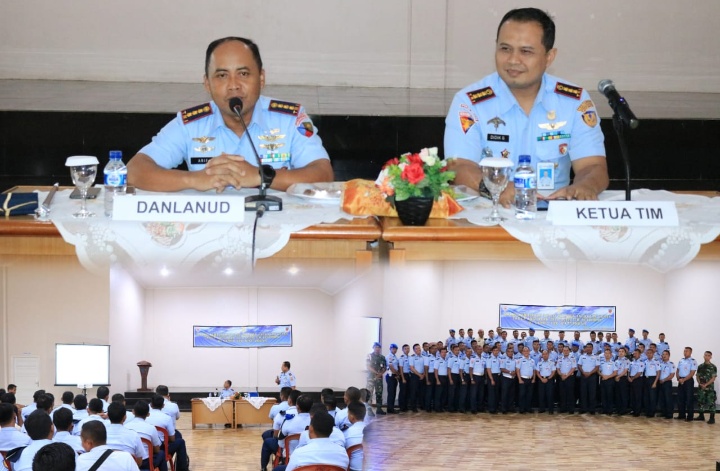 Penyambutan safari bertepatan kegiatan pembinaan disiplin prajurit yang dipimpin oleh Dansatrikning Puspomau Kolonel Pom Didik Gufirmanto selaku ketua Tim, dan dihadiri oleh seluruh personel Lanud Leo Wattimena bertempat di GOR Lanud Leo Wattimena, Jum’at, (16/11).