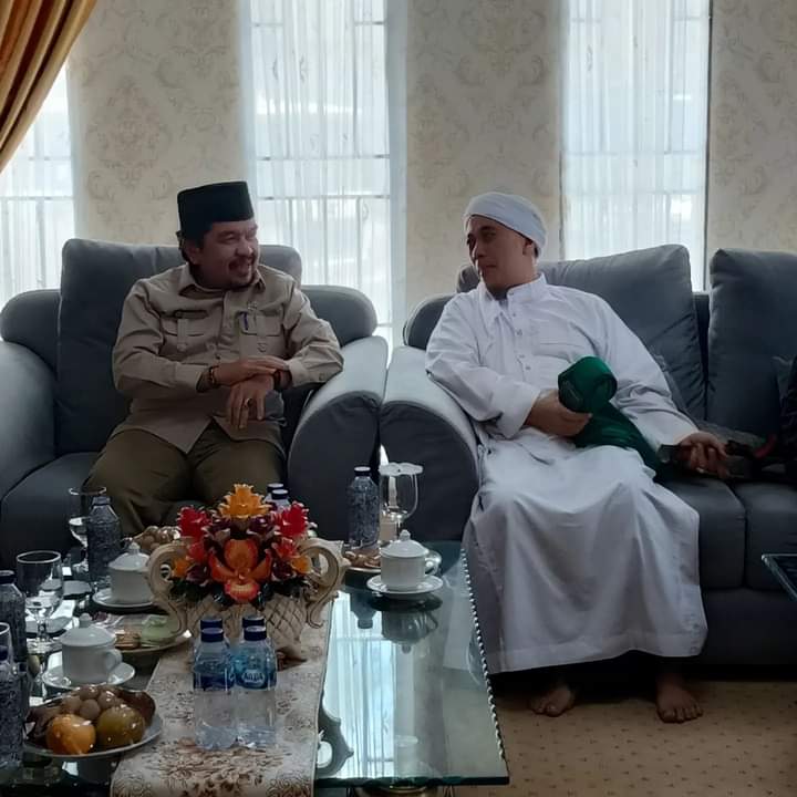Sarolangun – Ketua DPRD Sarolangun Tontawi Jauhari menyambut kedatangan Ustaz Opick, di Rumah Dinas Ketua DPRD Kabupaten Sarolangun, Senin (28/3/2022).