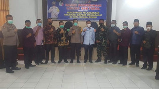 Sungai Penuh – Pj. Sekda Alpian menghadiri rapat koordinasi lintas sektoral percepatan Vaksinasi bersama dengan Polres Kerinci, Kodim 0417 Kerinci dan Camat Se- Kota Sungai Penuh, Minggu (06/05).