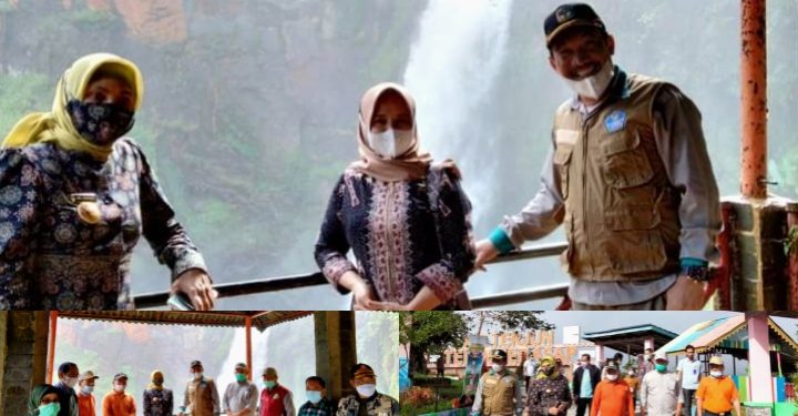 Dalam kunjungan pertama pasca dilantik sebagai Pj Gubernur Jambi, Dr. Hari Nur Cahya Murni mengunjungi objek wisata Air Terjun Telun Berasap di Kayu Aro, terlihat