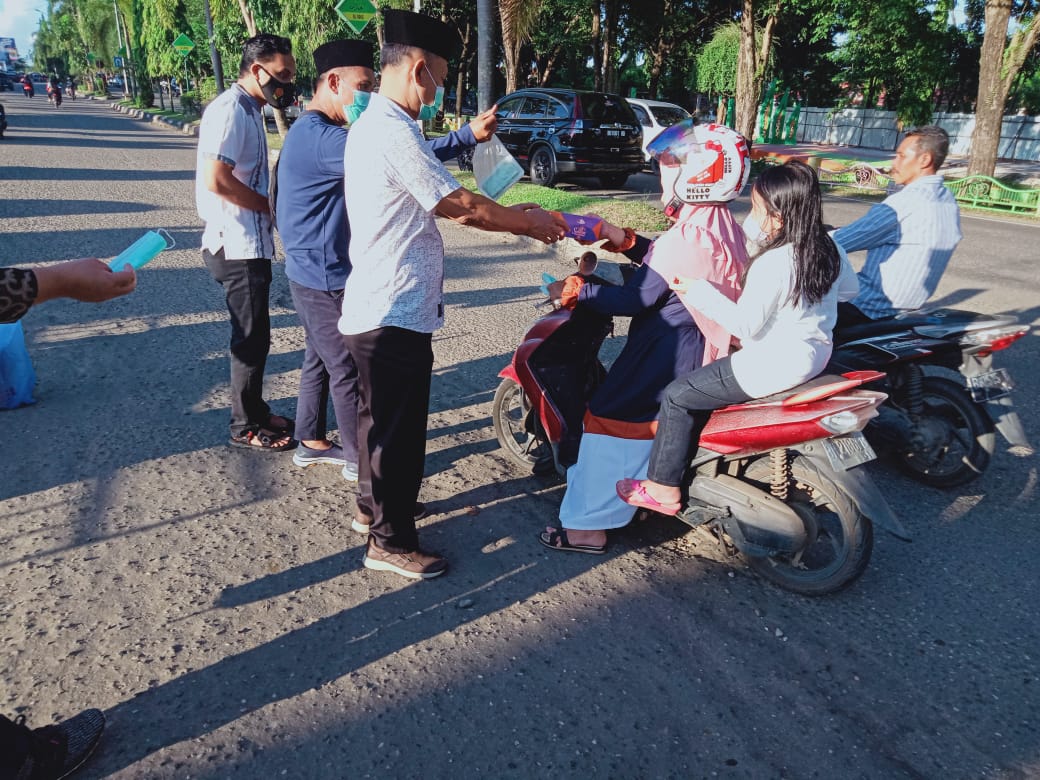 Selain bagi bagi takjil, kegiatan tersebut juga memberikan himbauan serta memberikan masker gratis kepada pengendara yang melintas.