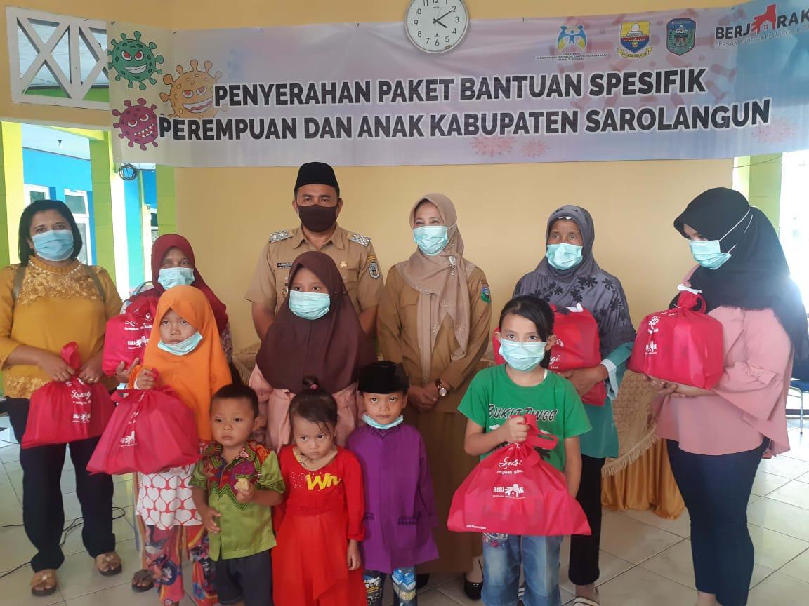 Febriati SE, Peltu Dinas Pemberdayaan Perempuan dan Perlindungan Anak (DP3A) Kabupaten Sarolangun mengatakan, paket bantuan dari kementrian Pemberdayaan Perempuan dan Perlindungan Anak Republik Indonesia itu berjumlah 55 paket yang diserahkan kepada warga yang membutuhkan, warga yang pernah mengalami KDRT, dan juga para Lansia.