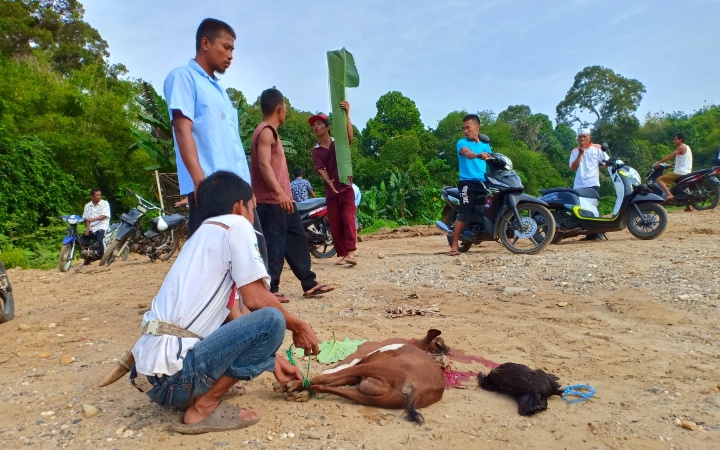 “Sudah hampir satu bulan masyarakat diresahkan. Meski begitu masyarakat tetap harus tenang dan waspada serta lakukan aktivitas seperti biasanya. Maka hari ini kami menyembelih dua ekor kambing dan menaburkan tepung tawa, serta doa bersama. sebagai pengganti dan permohonan maaf,” kata Isbun Selasa (09/10/2018).