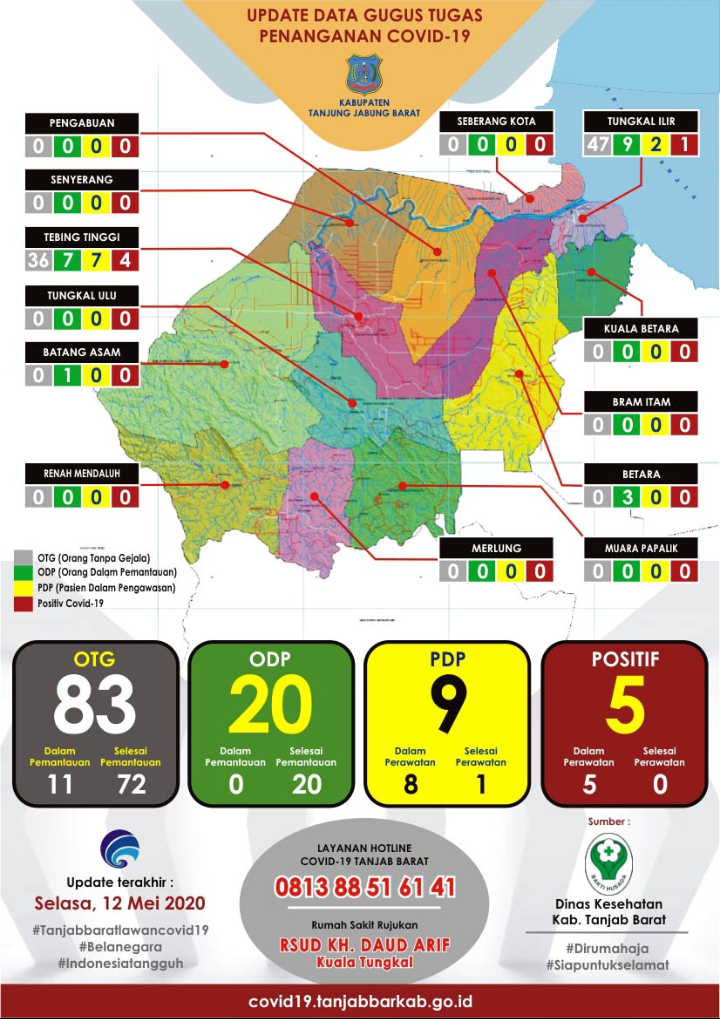 Tanjab Barat-, Status Kabupaten Tanjung Jabung Barat terkait dengan penanganan Covid 19 naik menjadi status Tanggap Darurat. Hal ini disampaikan oleh Zulfikri , Kepala Badan Penanggulangan Bencana Daerah (BPBD) Kabupaten Tanjabbar saat di konfirmasi, Rabu (13/05/2020)