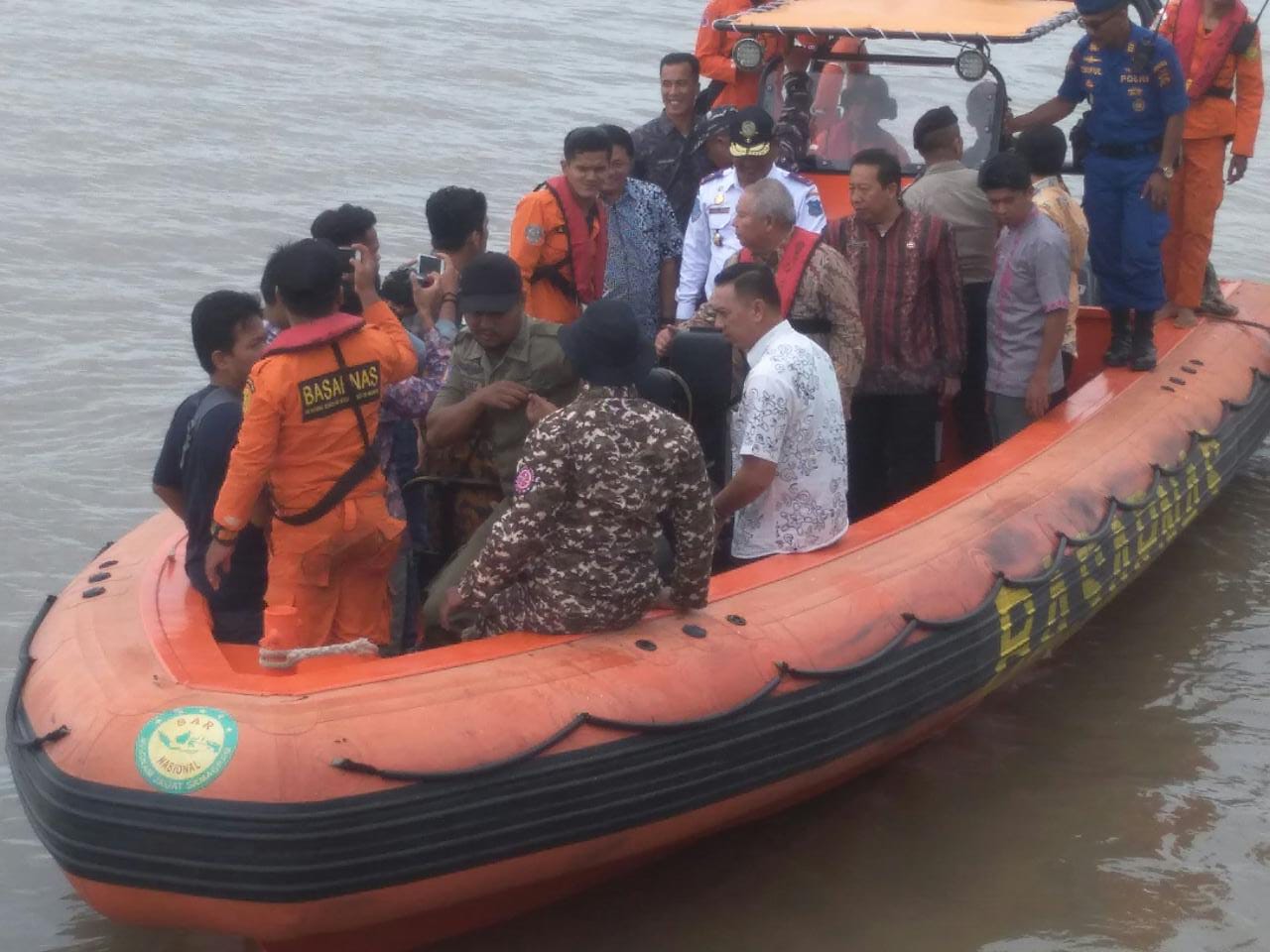 Tanjab Barat-, Bupati Tanjungjabung Barat, H Safrial ikut menelusuri Sungai Pengabuan, Kualatungkal dengan menggunakan speedboat bersama OPD terkait, tim SAR, TNI dan Polri membantu pencarian Zulfan (16) yang hilang terseret arus sungai pengabuan di kawasan Water Front City (WFC) sejak tiga hari lalu hingga Kamis (16/1) sore masih belum ditemukan.