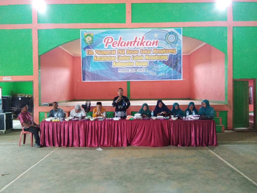 Muara Bungo – Tim Penggerak (TP) Pemberdayaan Kesejahteraan Keluarga (PKK) Kecamatan Limbur Lubuk Mengkuang melantik Tim Penggerak (TP) Pemberdayaan Kesejahteraan Keluarga (PKK) Dusun Sekar Mengkuang dan mengukuhkan Ketua Pengurus POKJA.