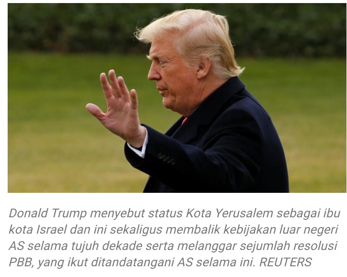 Draf resolusi PBB itu meminta Amerika menarik keputusannya mengakui Kota Yerusalem sebagai ibu kota Israel. Kepada wartawan di Gedung Putih pada Kamis, 21 Desember 2017, Trump berujar,
