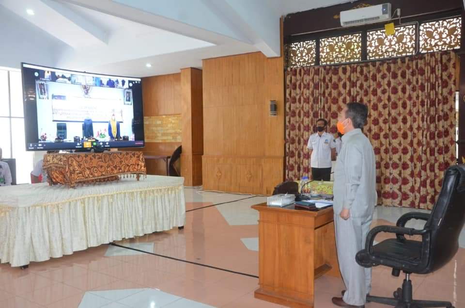 Bupati Batang Hari dalam sambutannya melalui Video Teleconference menyampaikan, disini, baik secara pribadi maupun secara ke Pemerintahan Kabupaten Batanghari mengucapkan terimakasih sebesar-besarnya kepada seluruh Anggota Dewan Kabupaten Batanghari, yang secara cermat dan penuh kesabaran dalam membahas, mengkaji laporan keuangan Pemerintah Kabupaten Batanghari Tahun Anggaran 2019. (Putra)