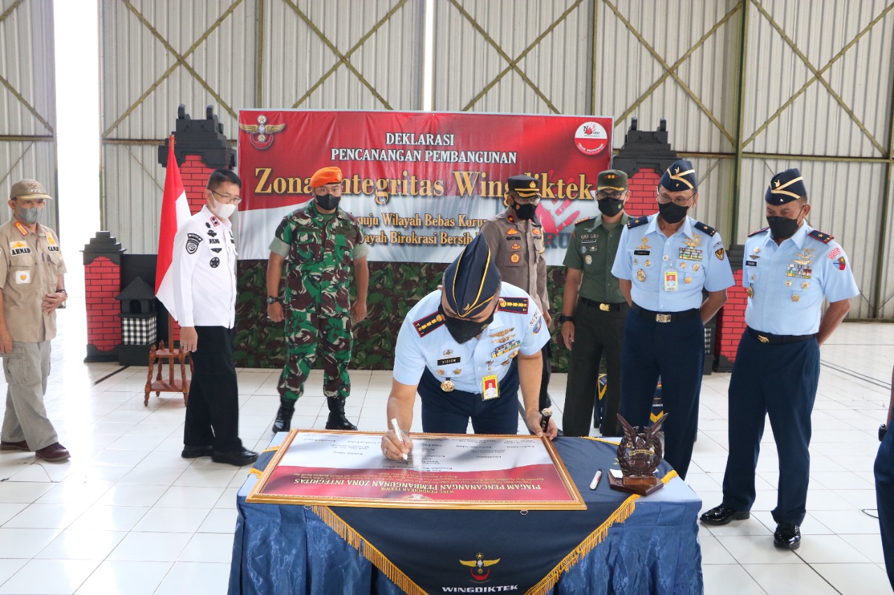 Pencanangan Zona Integritas dilaksanakan sebagai perwujudan dari pelaksanaan reformasi birokrasi di lingkungan Wingdiktek. Semoga dengan pencanangan Zona Integritas ini diharapkan ada perbaikan nyata dimasa yang akan datang sebagai sebuah landasan yang kokoh dalam mewujudkan tugas pokok Wingdiktek sesuai harapan TNI AU dalam mewujudkan Wilayah Bebas Korupsi (WBK) dan Wilayah Birokrasi Bersih dan Melayani (WBBM), demikian ungkap Danwingdiktek.