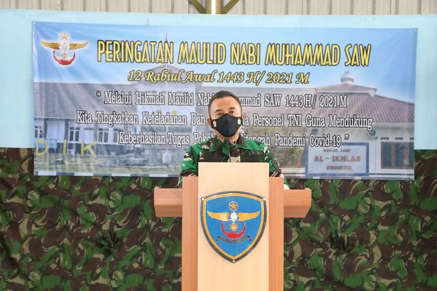 Turut hadir dalam kegiatan ini Komandan Wing Pendidikan Teknik (Danwingdiktek) Kolonel Tek Videon Nugroho S.ST.M.Han beserta para Kadis Wingdiktek, dan Ketua Pia Ardhya Garini Cabang 5 / G.II Wingdiktek Ny. Wily Videon Nugroho di dampingi oleh pengurus Pia Wingdiktek. Kegiatan Acara yang dilaksanakan dengan tetap mematuhi protokol kesehatan yang ada. Tema yang diusung pada peringatan Maulid Nabi kali ini adalah “Melalui Hikmah Maulid Nabi Muhammad Saw Tahun 1443 H/2021 Masehi kita tingkatkan keteladanan dan etos kerja personil TNI guna mendukung keberhasilan tugas pokok TNI ditengah pandemi covid-19”.