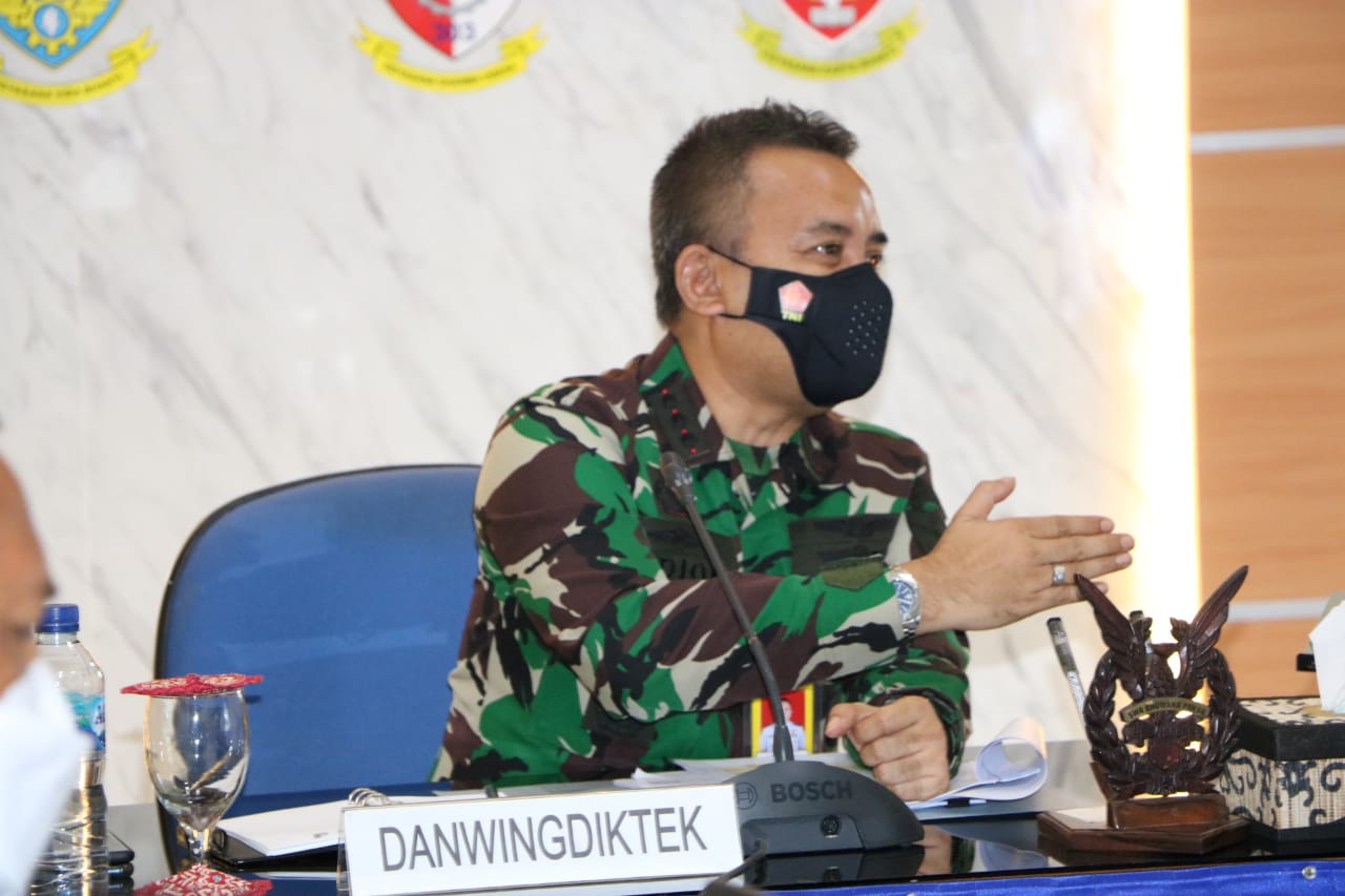 TNI AU KALIJATI – Komandan Wing Pendidikan Teknik (Danwingdiktek) Kolonel Tek Videon Nugroho S.ST.M.Han bersama jajaran Wingdiktek menghadiri rapat Rencana Validasi jabatan dan penyesuaian stuktur organisasi Wingdiktek menjadi Wingdik 300/TEK hadir dalam kegiatan ini Paban III/Binrog Ditdok Kodiklatau Kolonel Adm C. Sukarno beserta Tim dari Kodiklatau, bertempat di Ruang Rapat Mawingdiktek Kalijati Subang, Kamis (14/10).