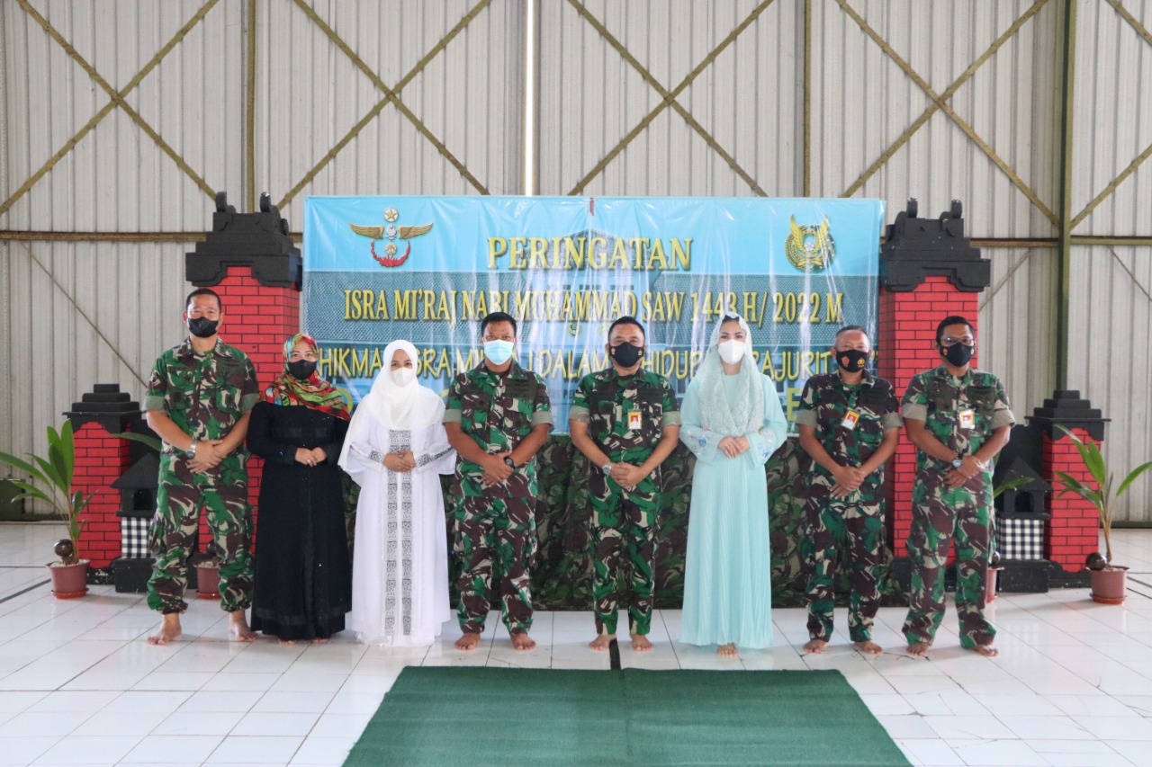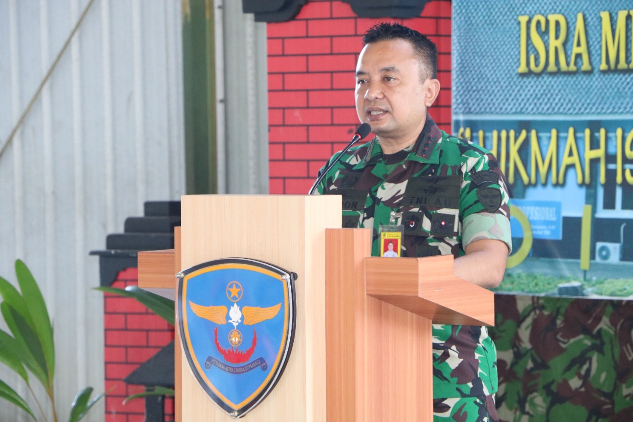 TNI AU Kalijati – Bertempat di Hanggar 1 Skadik 303 Wingdiktek. Komandan Wing Pendidikan Teknik (Danwingdiktek) Kolonel Tek Videon Nugroho S., S.T., M.Han dan Ketua PIA Ardhya Garini Cabang 5/Gabungan II Wingdiktek Ny. Wily Videon Nugroho beserta personel Wingdiktek dan Pengurus PIA Ardhya Garini Cabang 5/Gabungan II Wingdiktek dan para Siswa Wingdiktek menggelar peringatan Isra Mi’raj Nabi Muhammad SAW 1443H/2022 M. Rabu (9/3).