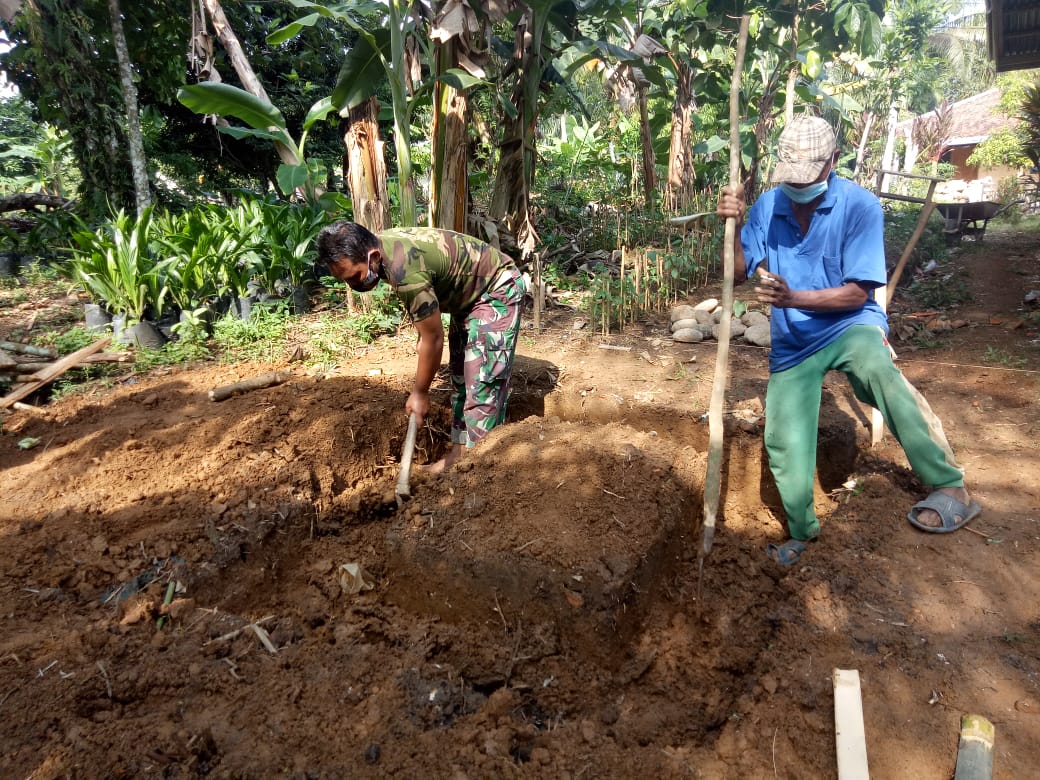 Merangin – Guna membantu mewujudkan lingkungan yang sehat dan bersih, anggota Pra TMMD Ke 111 Kodim 0420/Sarko Serka Kurniadi ikut melakukan penggalian lubang septic tank MCK Posyandu Melati I bersama warga Suyamto(60) di Dusun I Desa Bukit Beringin Kecamatan Bangko Barat Kabupaten Merangin, Senin (07/06/2021).